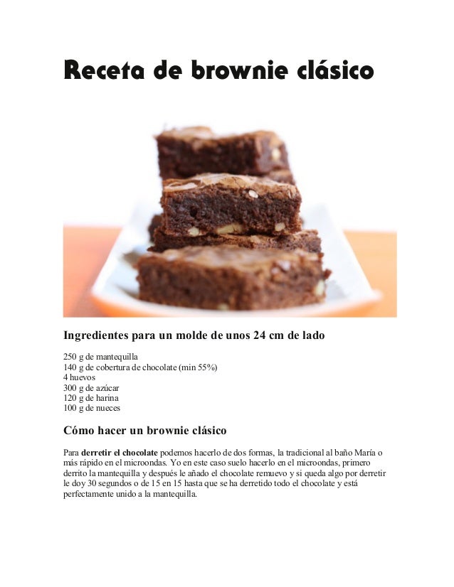 Cómo hacer brownies de chocolate. receta del clásico brownie con un interior denso y jugoso sabor a chocolate y un capa fina exterior crujiente. paso a paso . 13-jul-2017 parte de nuestra adicción al chocolate se la debemos al brownie de chocolate. conoce la mejor receta americana de todos los tiempos. 14-oct-2019 cómo hacer brownie de chocolate con nueces. receta paso a paso con fotos, vídeos y trucos para hacer un brownie ¡insuperable!.
